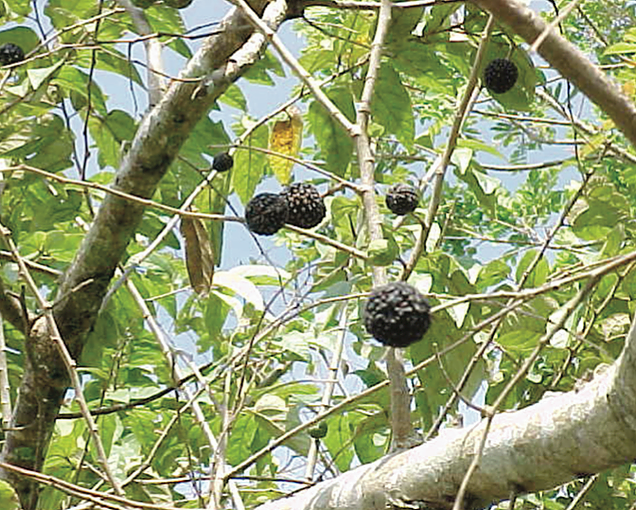 Result (s) . Capsule 3-4 cm long, 10 cm in infructescences, ovoid , 5-valvate , opening late, with numerous conical bumps on the surface, dark brown to black when ripe , sweet smell and taste. Remain long on the tree.